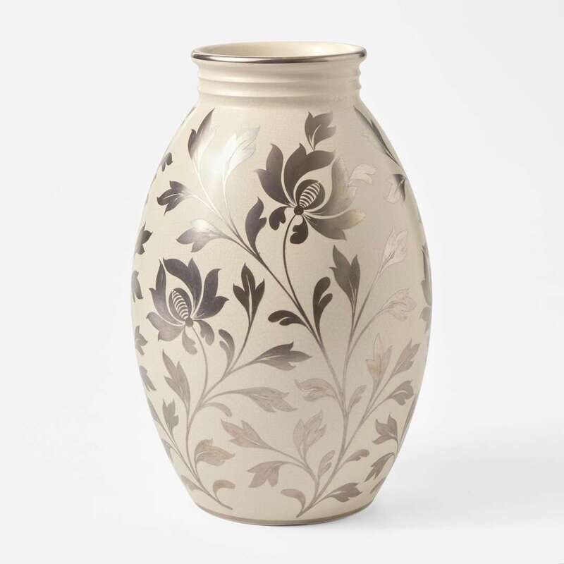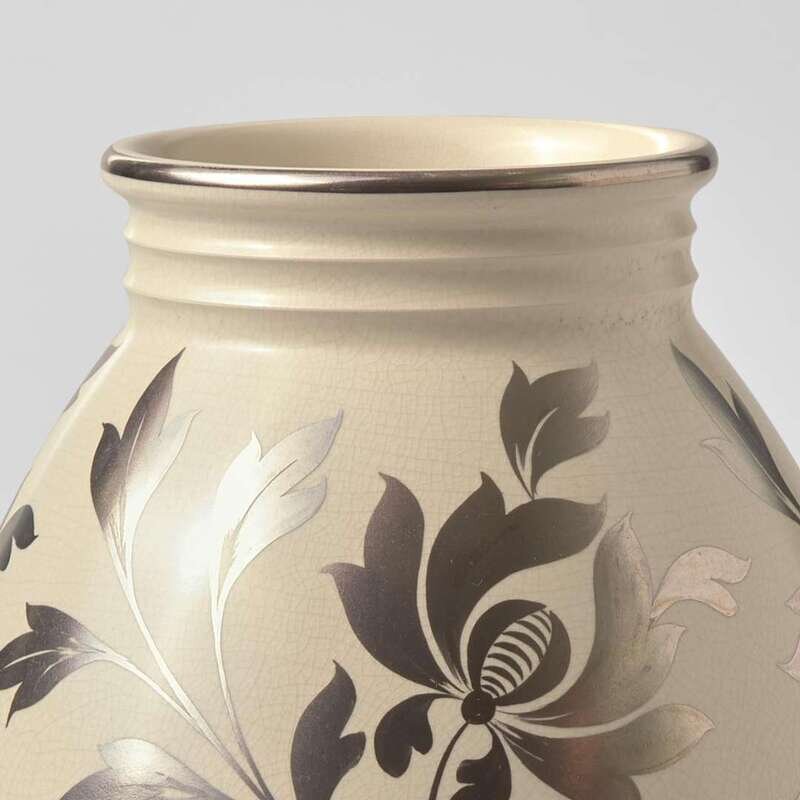 Shape 3985, glazed in Moonstone, with a silver resist floral pattern.