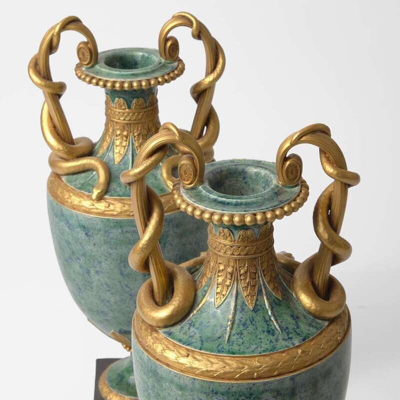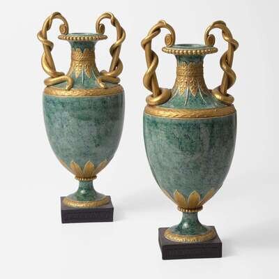 A Pair of Wedgwood Simulated Porphyry Snake-Handled Vases UK, circa 1790 and later