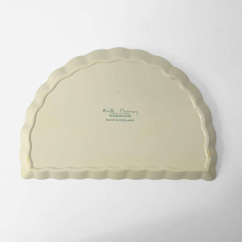 Impressed "WEDGWOOD" and "MADE IN ENGLAND"; printed Keith Murray signature Wedgwood mark (on tray). Keith Murray initial Wedgwood mark (on inkwell).