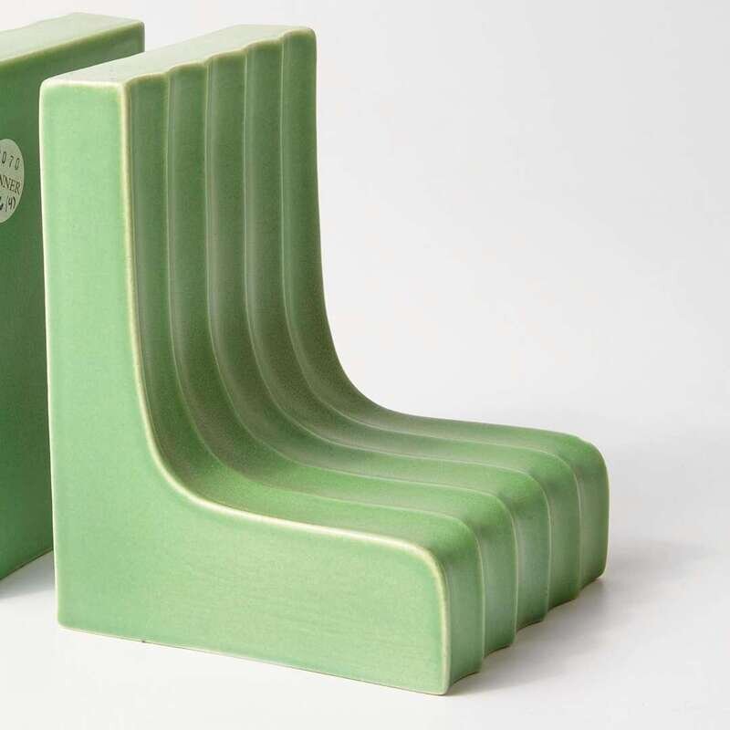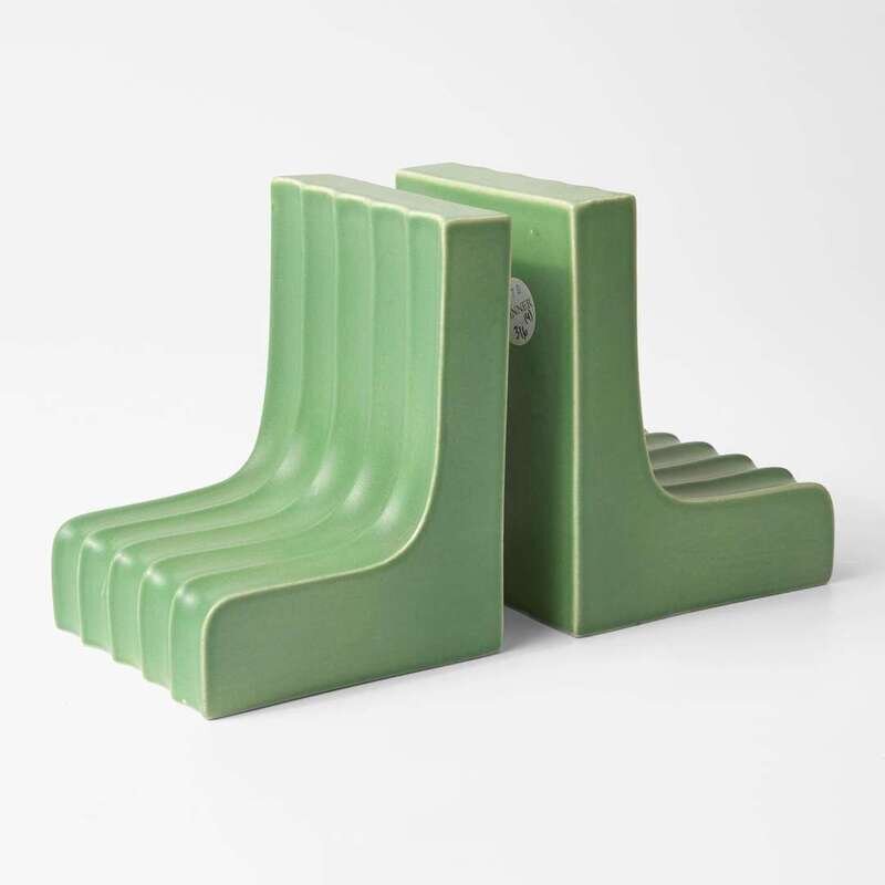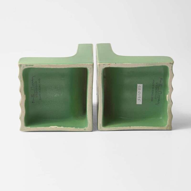A Pair of Wedgwood Keith Murray (1892-1981) Designed Matt Green Bookends UK, 1930s