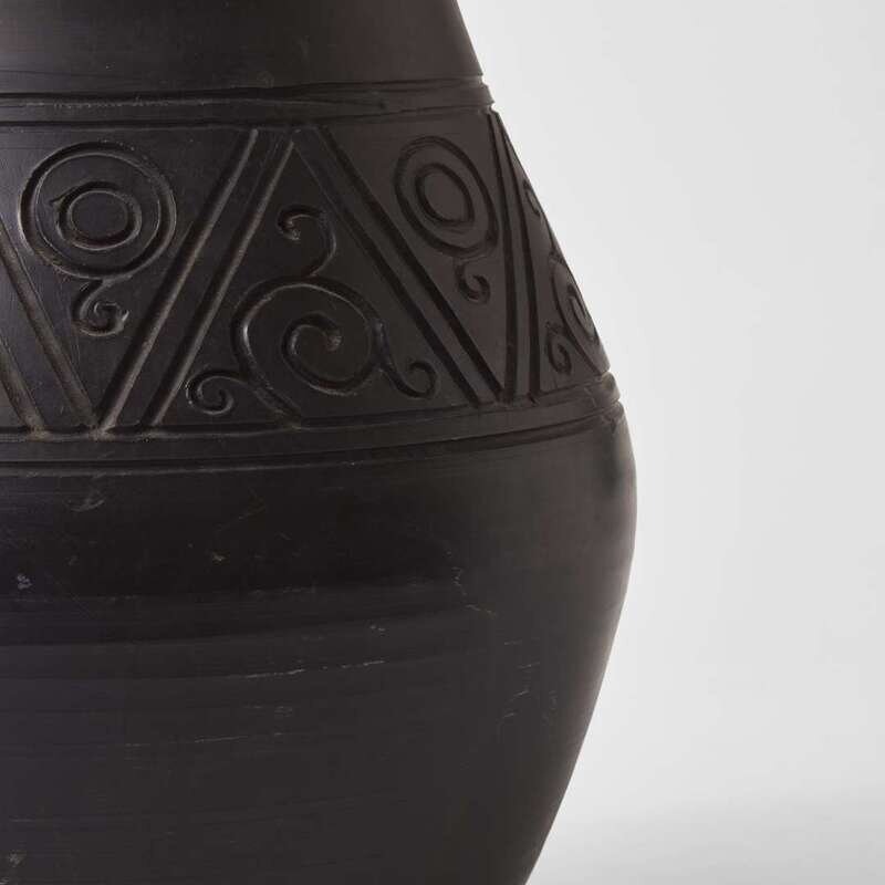 With deeply carved incised decoration.