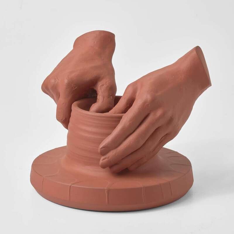 A Wedgwood Sculpture "The Hands of a Potter" Designed by Colin Melbourne UK, 1978