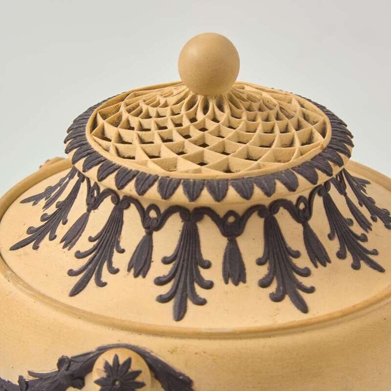A Wedgwood Black Basalt-Decorated Caneware "Dolphin" Pastille Burner UK, circa 1810