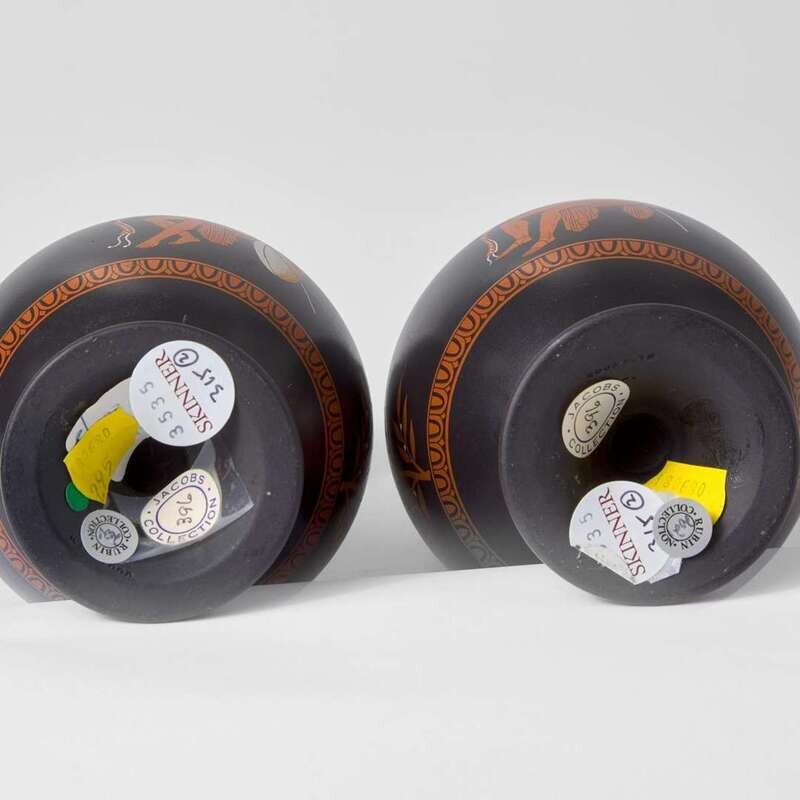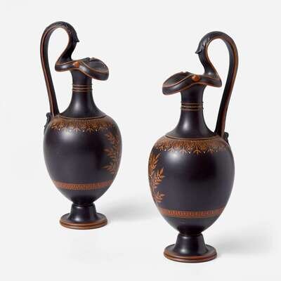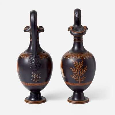 A Pair of Wedgwood Encaustic-decorated Black Basalt Oenochoe UK, circa 1795