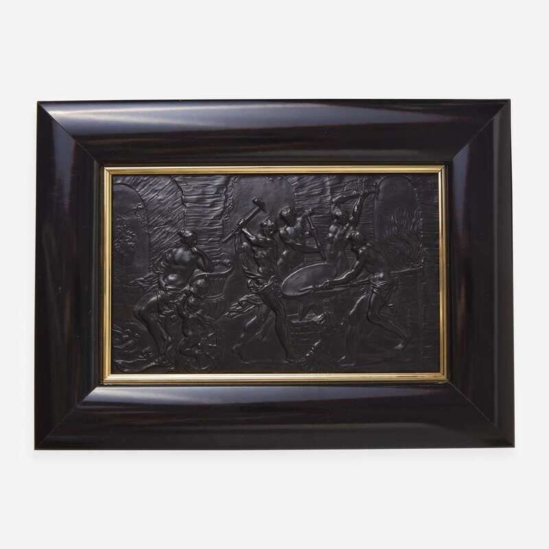 A Wedgwood Black Basalt "Vulcan Forging the Armour for Achilles at the Request of Venus" Plaque UK, 1790s