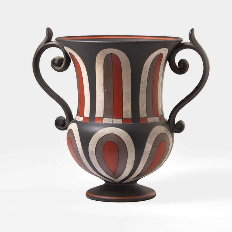 A Wedgwood Encaustic-Decorated Black Basalt Handled Urn UK, 19th century