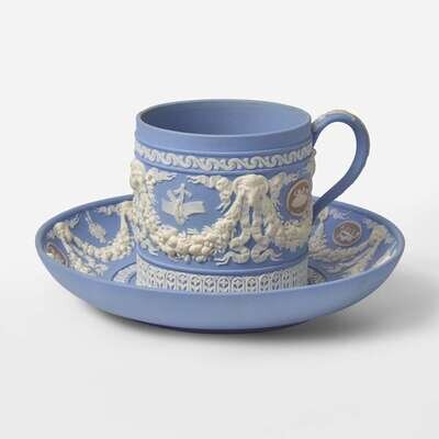 A Wedgwood Tricolor Jasperware Cup and Saucer UK, circa 1820