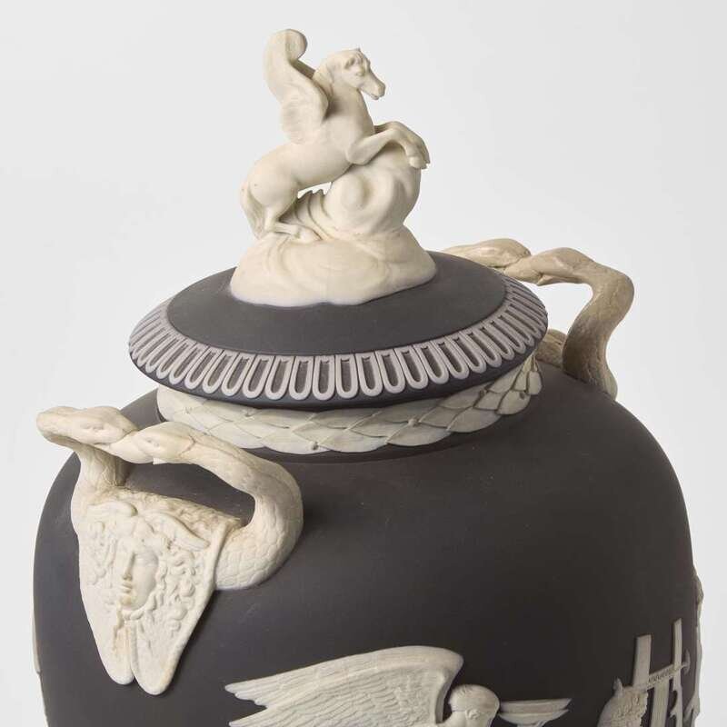A Wedgwood Solid Black Jasperware Pegasus Vase and Cover UK, 1880s