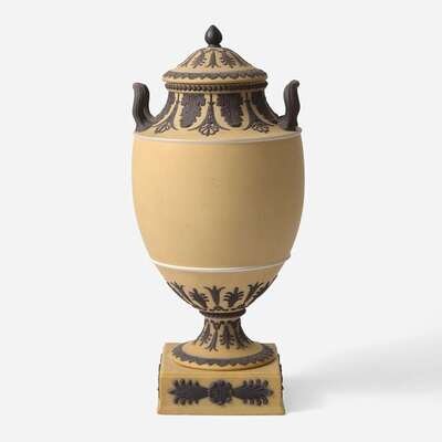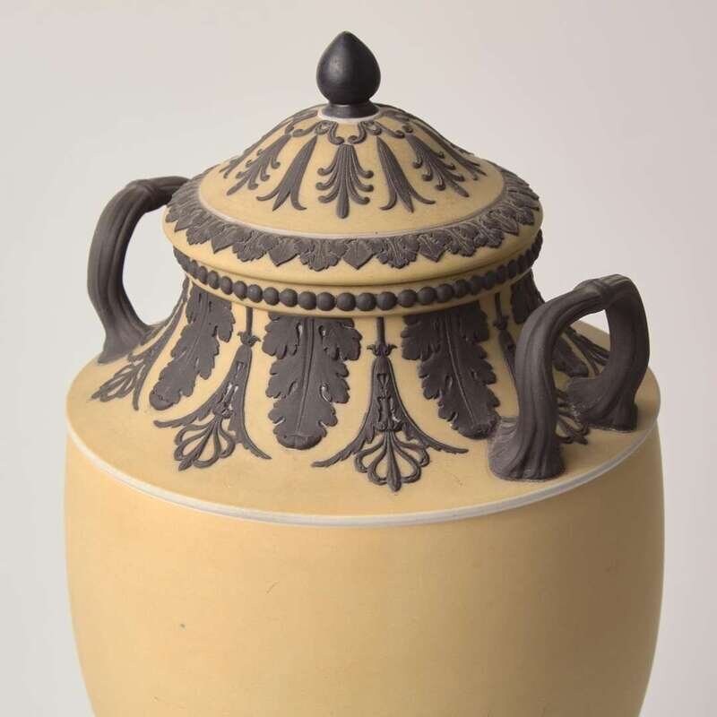 A Wedgwood Buff Yellow Dip and Solid Black Jasperware Vase and Cover UK, circa 1880