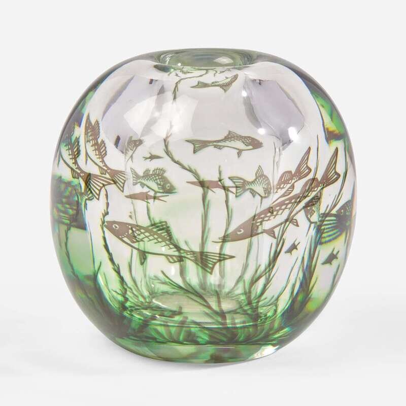 Edward Hald (Swedish, 1883-1980) "Graal" Fish Vase, Orrefors, Sweden, designed 1936, the present lot 1947