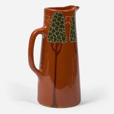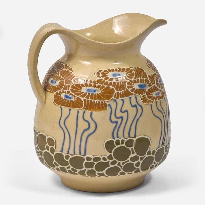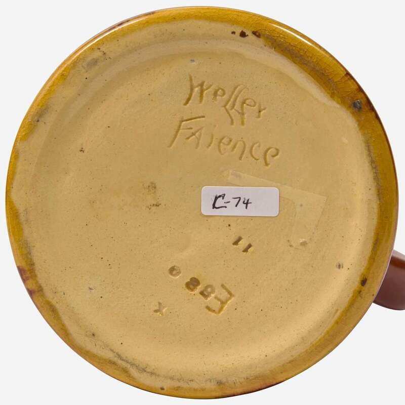 The pitcher incised "Weller Faience" and stamped "11, E, 5, 8, 0, X"