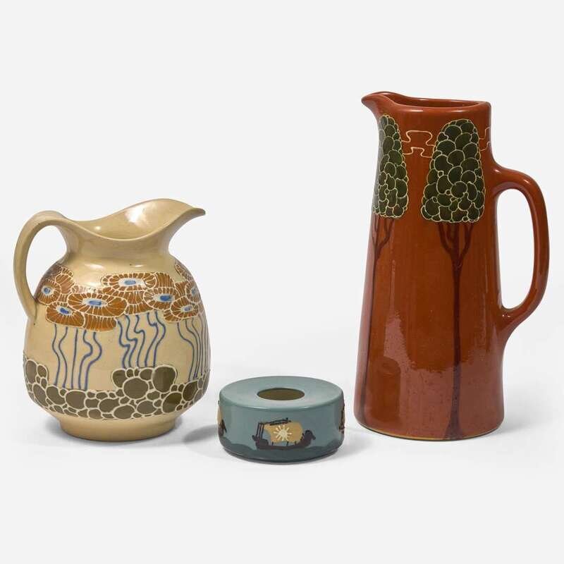 Frederick Hurten Rhead (British-American, 1880-1942) and Attributed Three Faience Vessels, USA, circa 1903