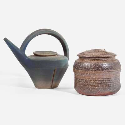 Karen Karnes (American, 1925-2016) Teapot and Large Lidded Jar, USA, late 20th century