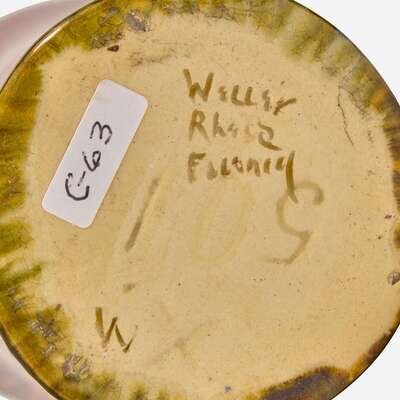 The tall green-ground vase incised: "Weller Rhead Faience" and stamped: "57, 1"