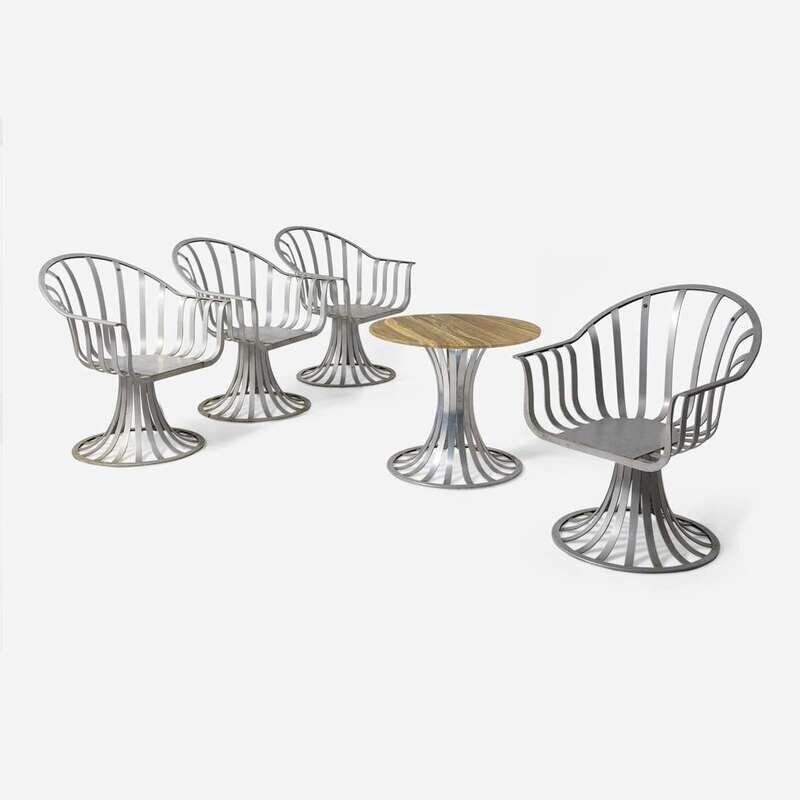 Herbert Saiger (American, 20th century) Aluminum Outdoor Dining Set, Lee L. Woodard & Sons, USA, circa 1971