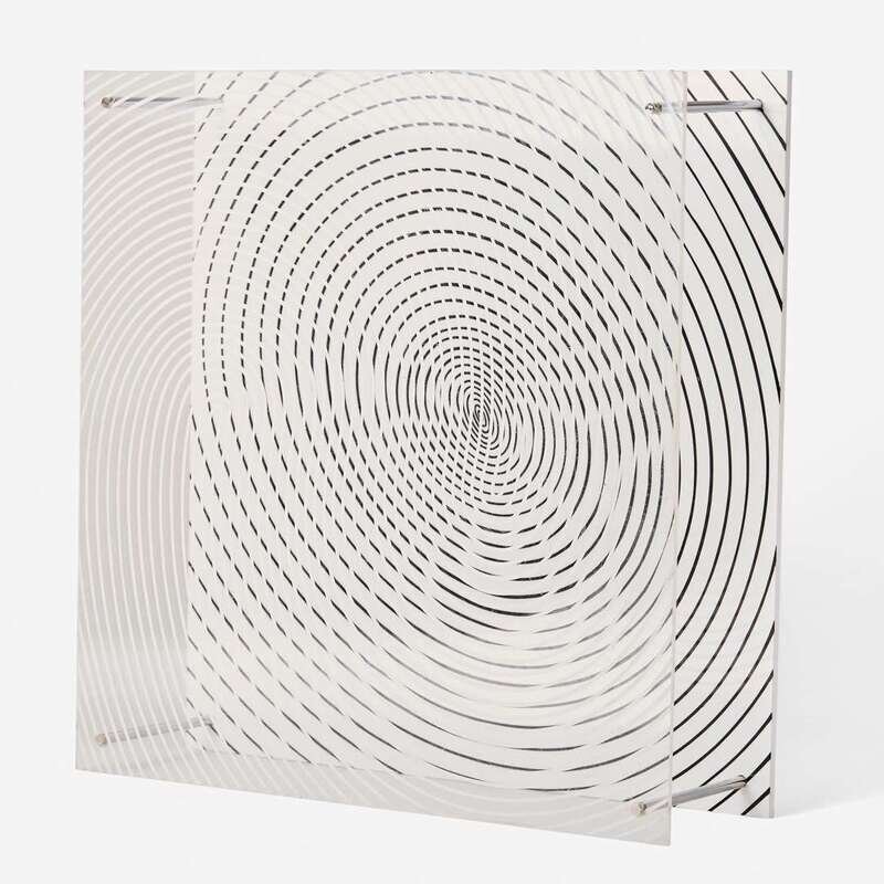 1979, ink signed and numbered 12/110 on label affixed to underside, Éditions Denise René, Paris, publisher. Silkscreen on plexiglass with metal rods.