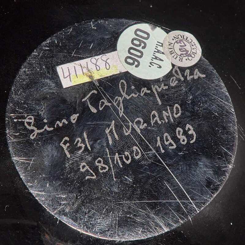 Etched to underside: "Lino Tagliapietra, F31 Murano, 98/100 1983" with applied Oggetti label