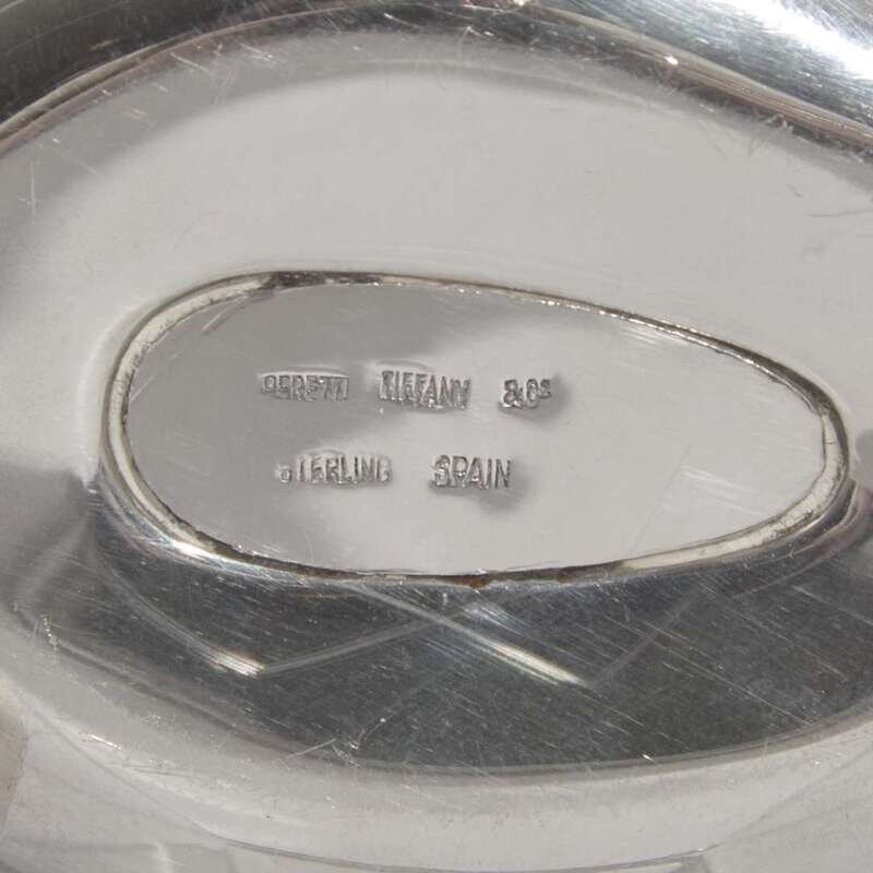 The pen and holder, bud vase base, pill box, and scent bottle with Tiffany & Co. and sterling marks