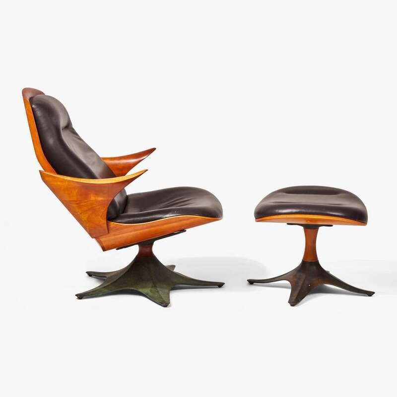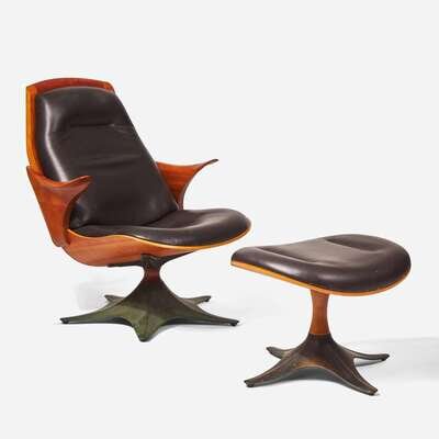 Thomas Moser Cabinetmakers (American, active 1972-Present) "Kinesis" Swivel Lounge Chair and Ottoman, USA, 2010