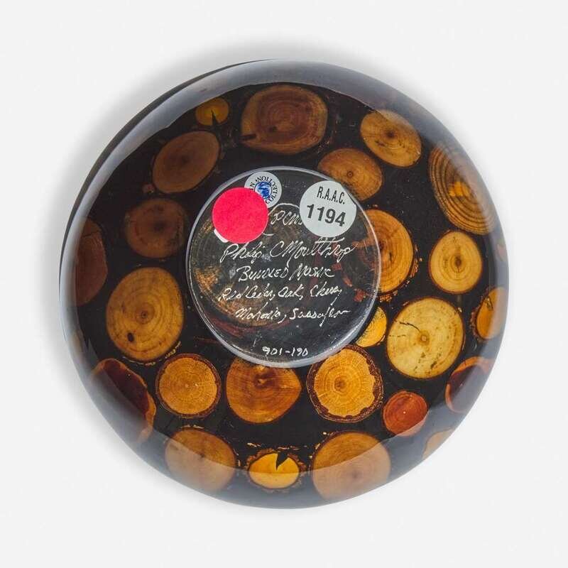 Etched to underside: "PCM Philip C. Moulthrop BUNDLED MOSAIC Red Cedar, Oak, Cherry, Mahonia, Sassafras, 901-190"