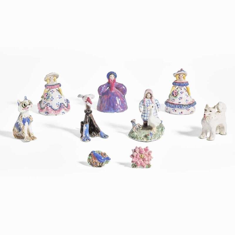 Mary Frances Overbeck (American, 1878 - 1955) Group of Seven Figurines, Overbeck Pottery, USA, early 20th century