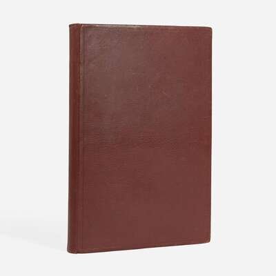Large leather bound volume of French ironwork sketches, photographs, business cards, and handwritten notes in French