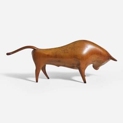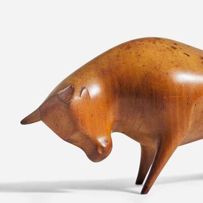 Franz Hagenauer (Austrian, 1906-1986) Carved Fruitwood Bull, Werkstätte Hagenauer, Austria, circa 1920s