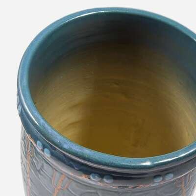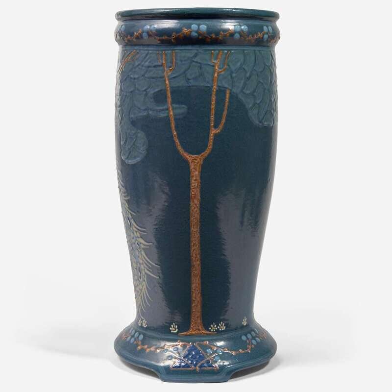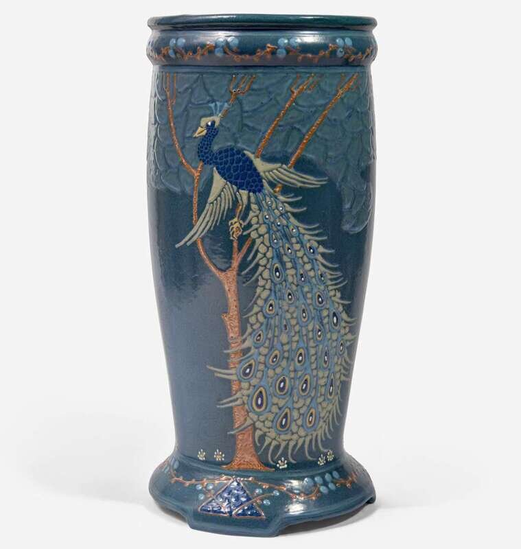 Frederick Hurten Rhead (British-American, 1880-1942) Peacock Umbrella Stand, Roseville Pottery, USA, circa 1908