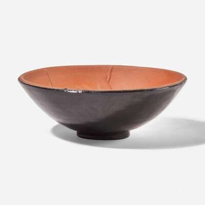 1955, from the edition of 100, stamped 'EMPREINTE ORIGINALE DE PICASSO' and 'MADOURA'. Red earthenware ceramic round cupel with black underside.