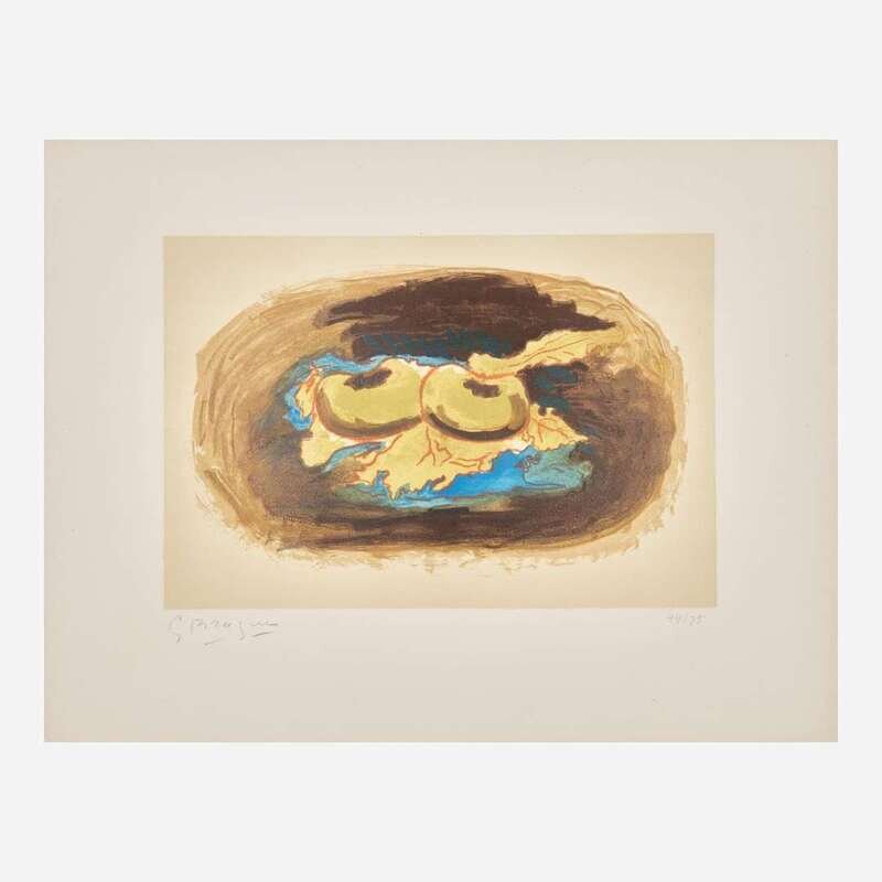 Prints: Marino Marini (Italian, 1901-1980), Ceramica II; Le Corbusier (French/Swiss, 1887-1965), Les Trois femmes assises; Kees van Dongen (Dutch/French, 1877-1968), Fernande Olivier; Georges Braque (French, 1882-1963), Pommes et feuilles; André Masson (French, 1896-1987), Femmes en Espalier; Graham Sutherland (British, 1903-1980), Hanging Form, Owl and Bat; Maurice Brianchon (French, 1899-1979), Am Strand.