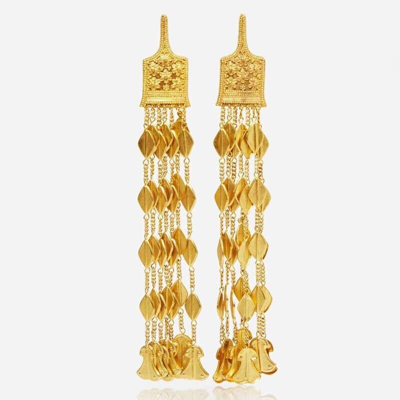 A pair of 18K yellow gold dangle earrings by Ilias Lalounis, on posts with omega clip backs.