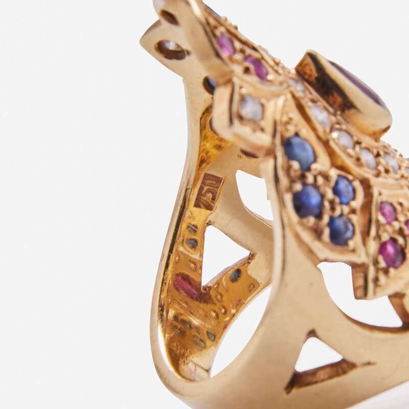 An 18K Yellow Gold and Gemstone Ring