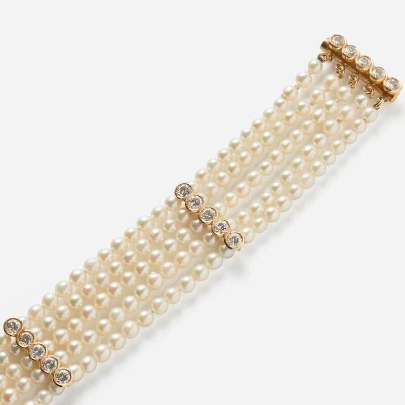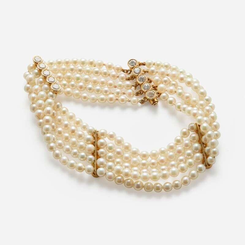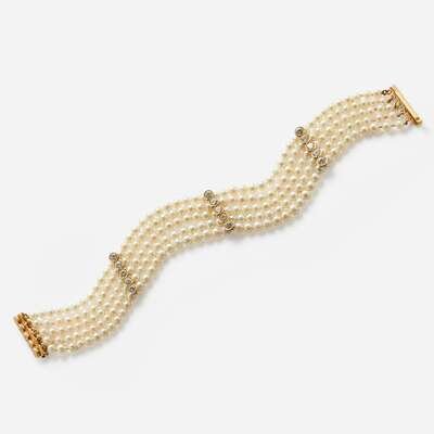 A Multi-Strand Pearl and Diamond Bracelet