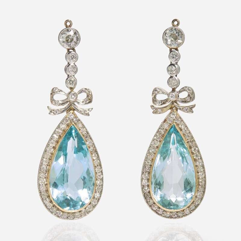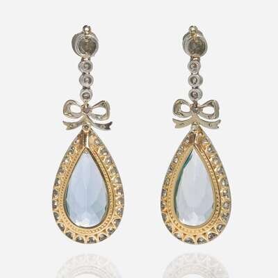 A Pair of Aquamarine and Diamond Earring Jackets