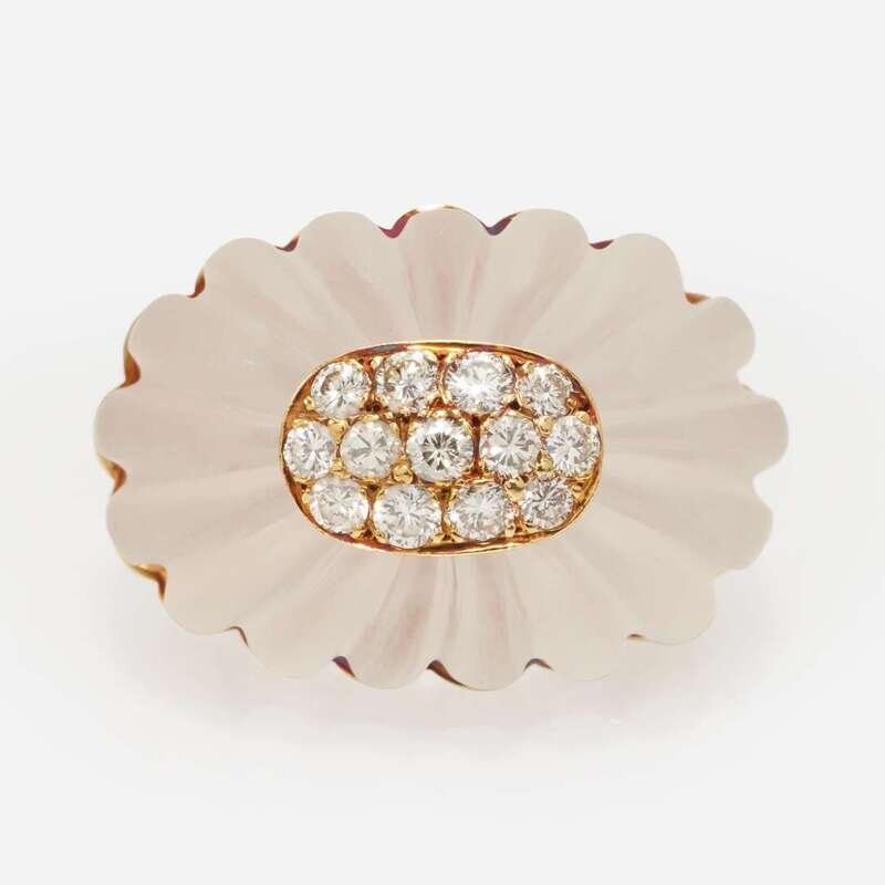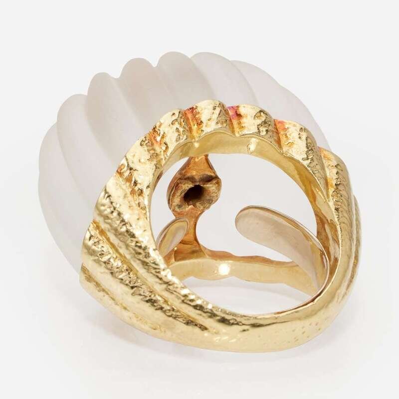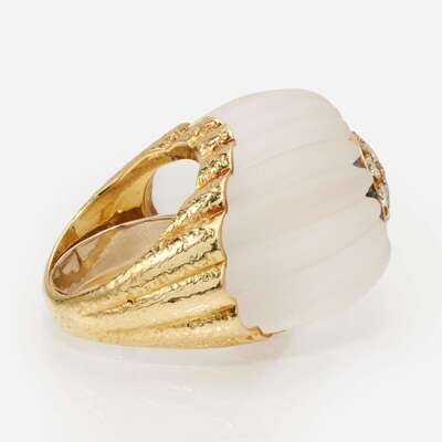 An 18K Yellow Gold, Rock Crystal, and Diamond Ring