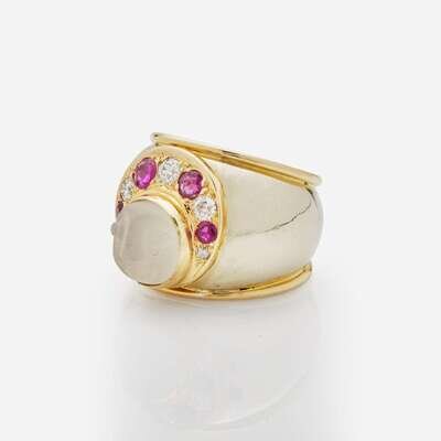 A 14K Yellow Gold and Gemstone Ring