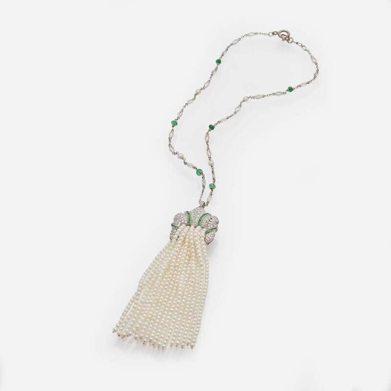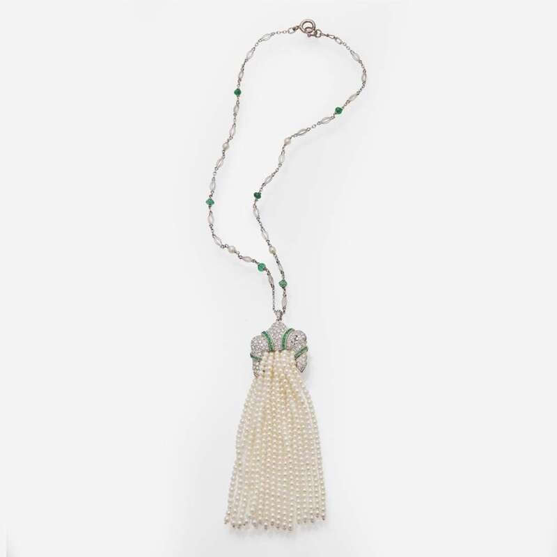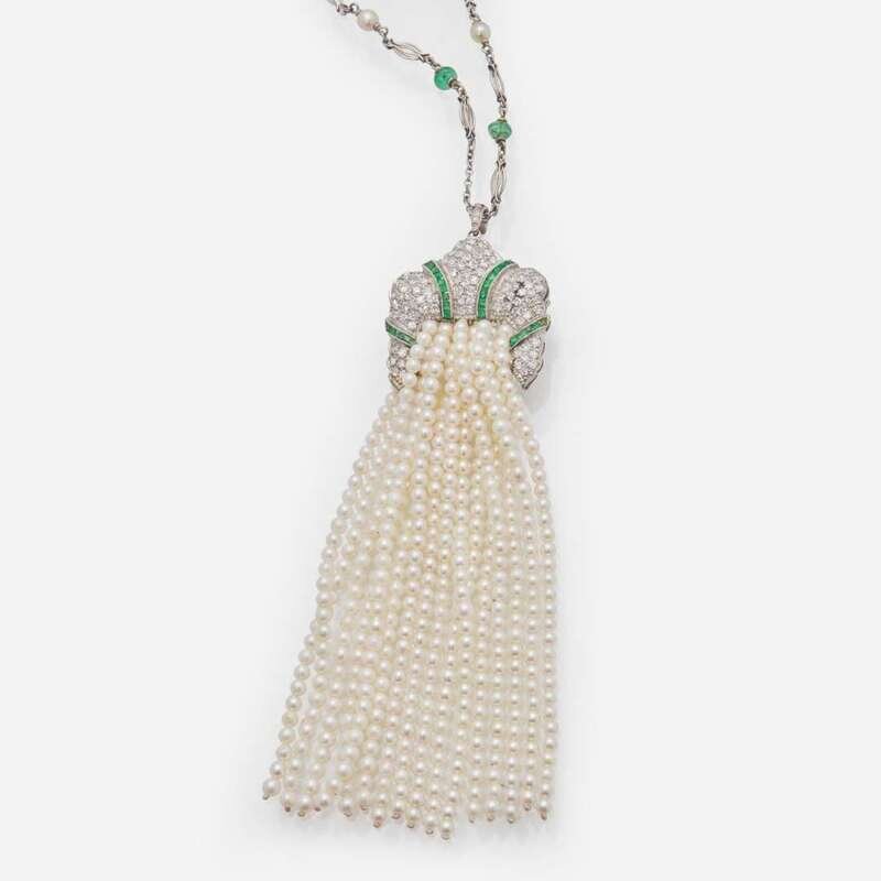 An Art Deco Diamond, Emerald, and Pearl Tassel Sautoir