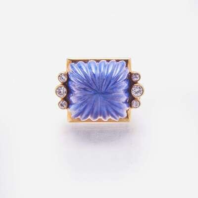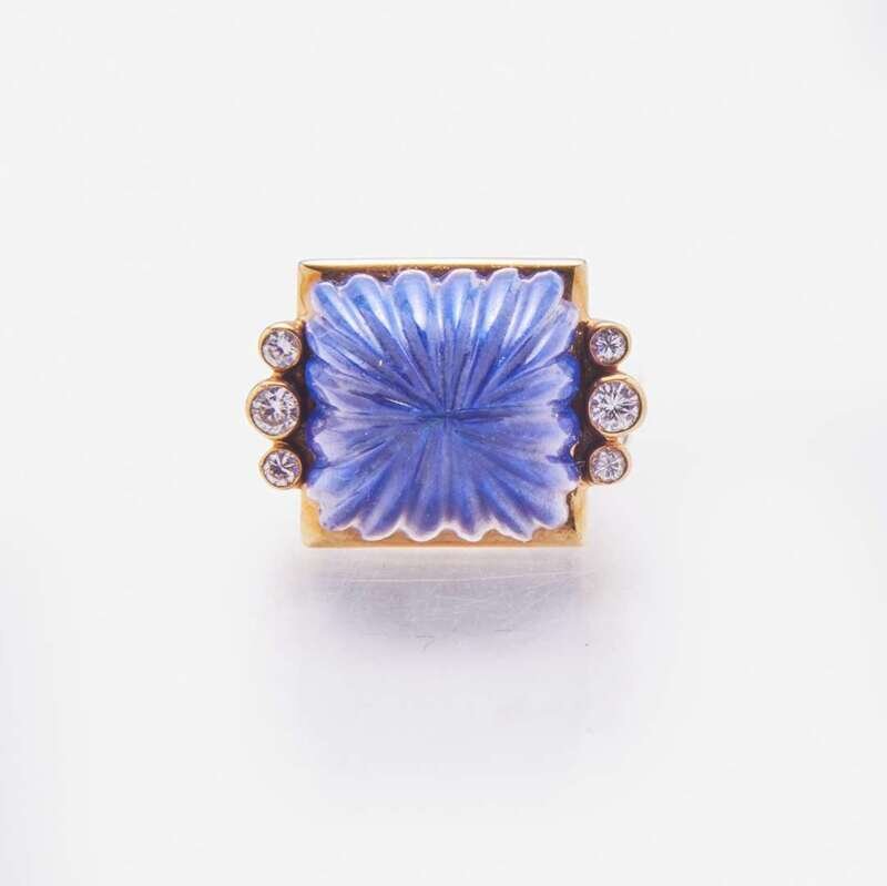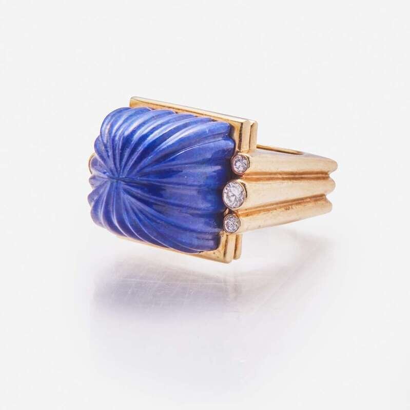 An 18K Yellow Gold, Lapis Lazuli, and Diamond Ring