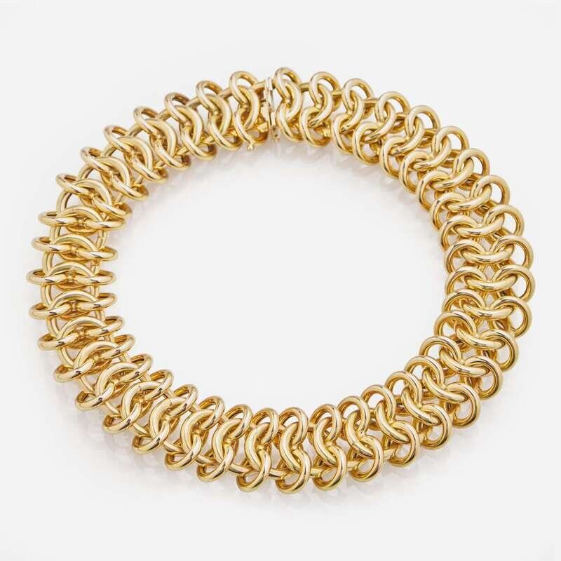 An Italian choker necklace, designed as swooping links of 14K yellow gold.