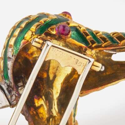 Tiffany & Co. Diamond, Ruby, and Enamel Antelope Brooch Aldo Cippulo for Tiffany c.1970