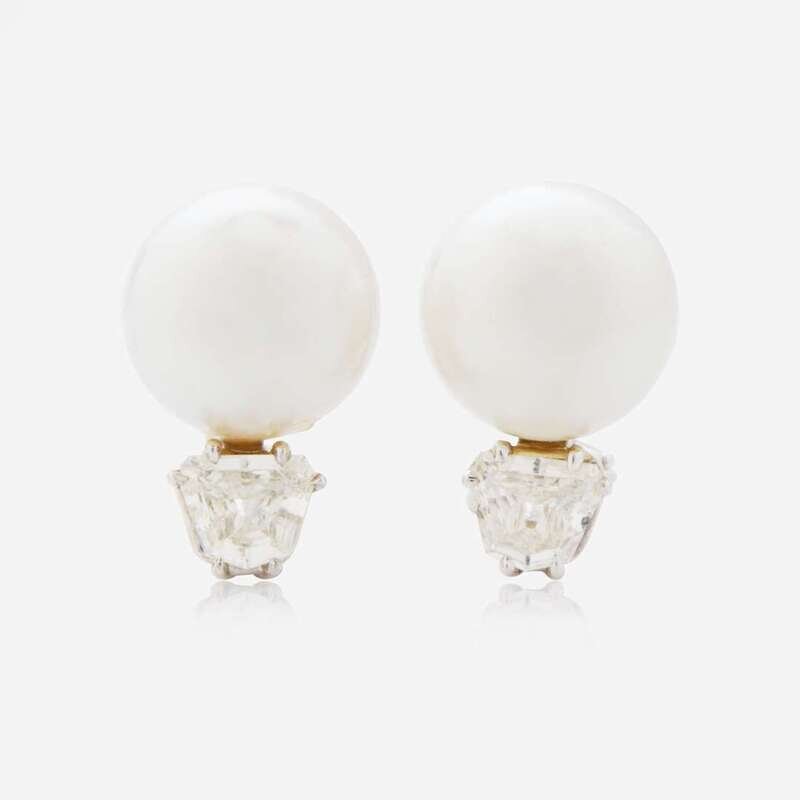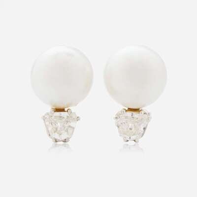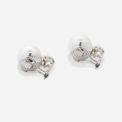 A Pair of 18K South Sea Pearl and Diamond Earrings by Seaman Schepps