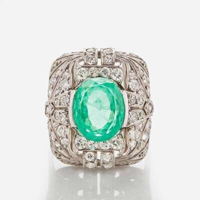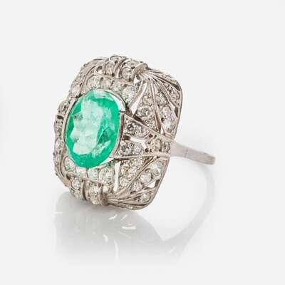 An Art Deco Columbian Emerald Diamond Ring c. 1920 GIA Certified