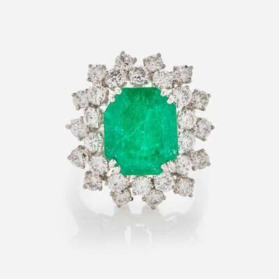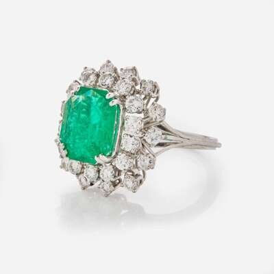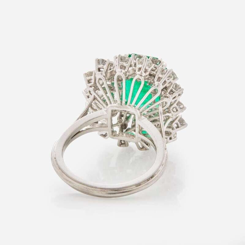 A Platinum, Emerald, and Diamond Ring