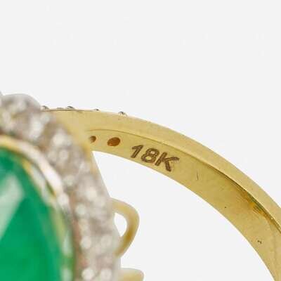 An 18K Yellow Gold, Emerald, and Diamond Ring