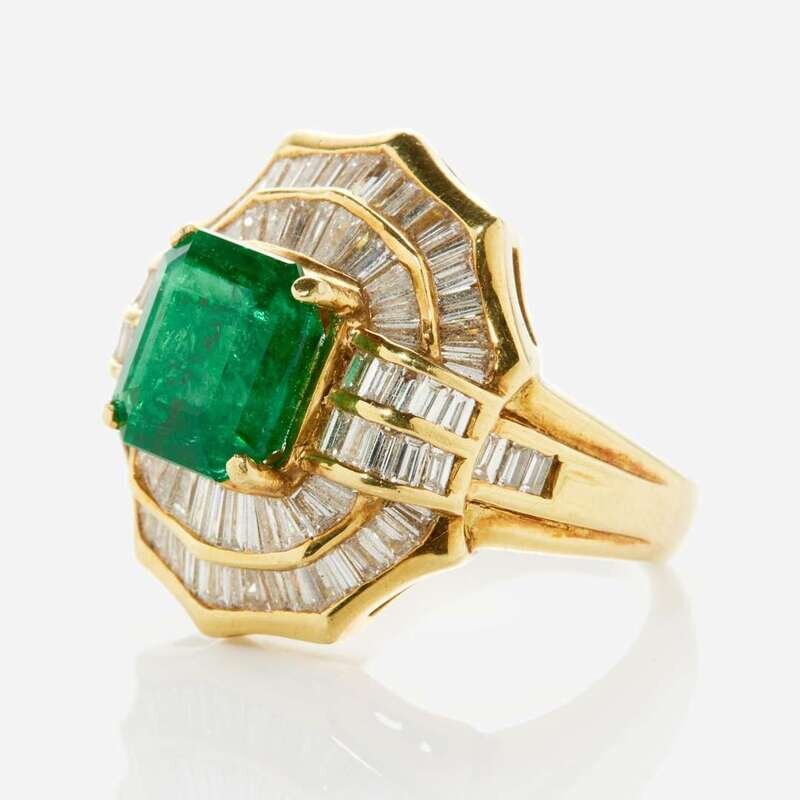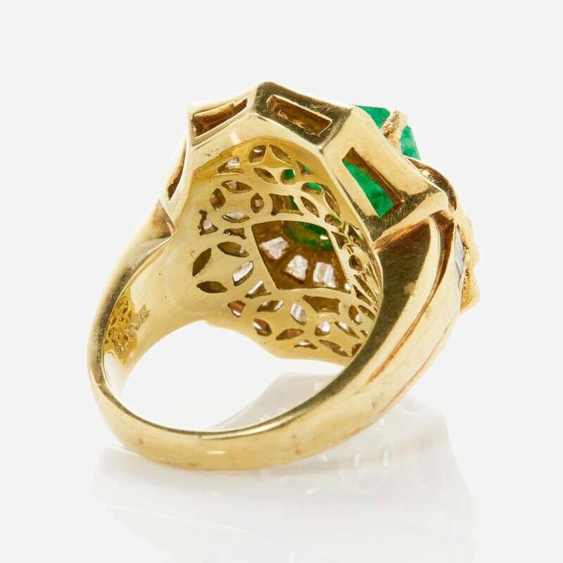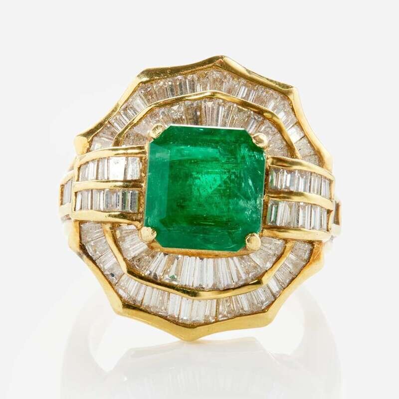 An 18K Yellow Gold, Emerald, and Diamond Ring