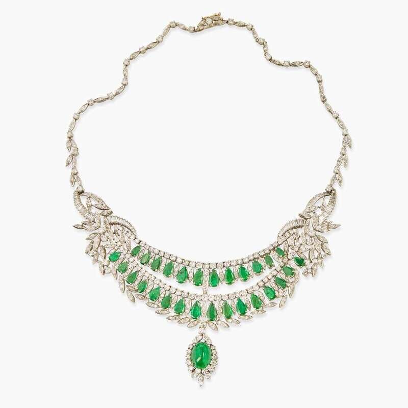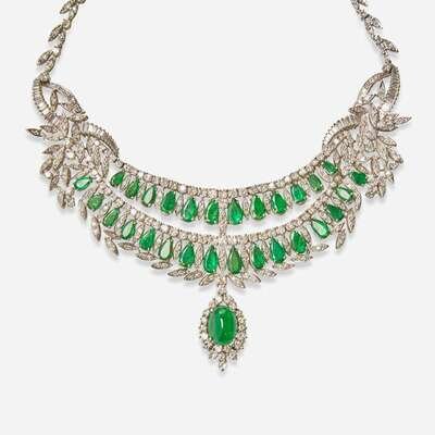 A Platinum, Emerald, and Diamond Necklace