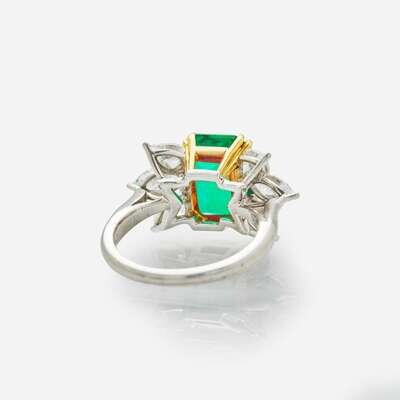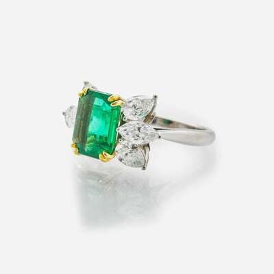 A Tiffany & Co. Platinum, Diamond, and Emerald Ring