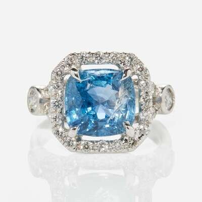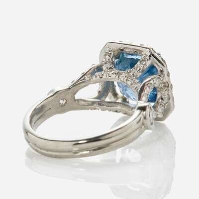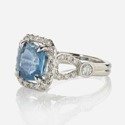 A Platinum, Diamond, and Sapphire Ring