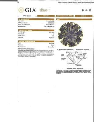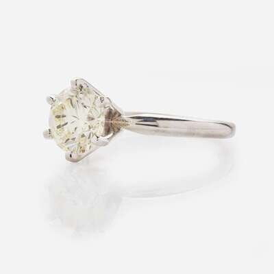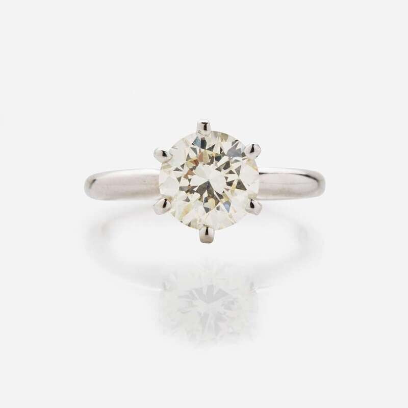 A 14K white gold ring, centering a 2.04 carat round brilliant-cut diamond in a six-prong setting. Diamond has light color (N), with VS1 clarity, and strong blue fluorescence. Diamond is accompanied by GIA Diamond eReport number: 2225805042.