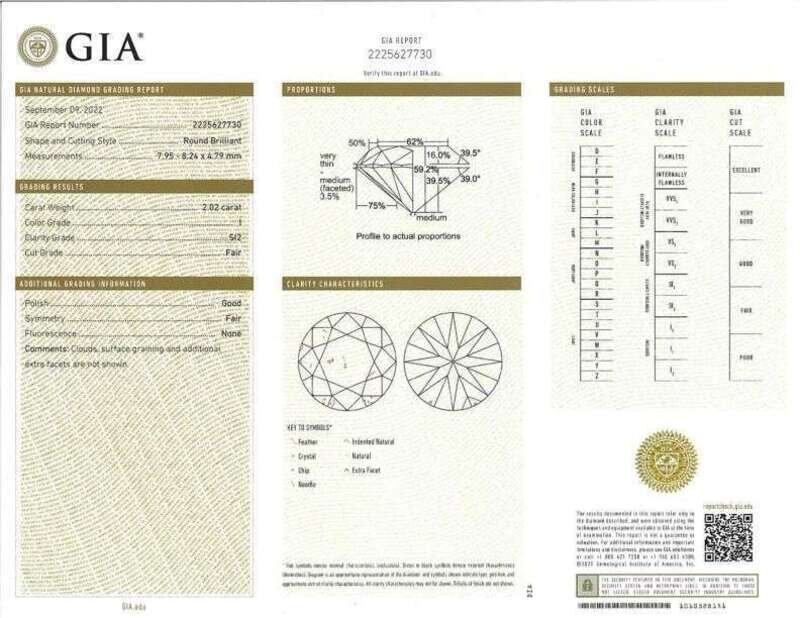 A platinum engagement ring circa 1920, set with one 2.02 carat round brilliant-cut diamond, near colorless (I), with SI2 clarity, and no fluorescence, accented by sixteen single-cut diamonds, approximately 0.30 carats altogether, near colorless G-J, with VS clarity. Total estimated weight of diamonds: 2.32 carats. Center diamond accompanied by GIA report number: 2225627730.